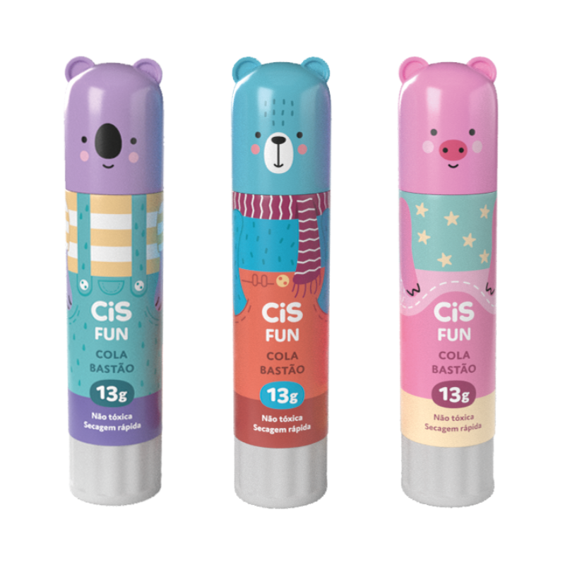 A Cola em Bastão Cis Fun traz um toque de diversão com carinhas de bichinhos fofos, como coala, urso e porquinho! Ideal para atividades escolares, artesanais e de escritório, sua fórmula não tóxica e de secagem rápida garante colagens limpas e seguras. Perfeita para crianças e adultos, a Cis Fun é uma opção prática para colar papel, cartolina e outros materiais leves.